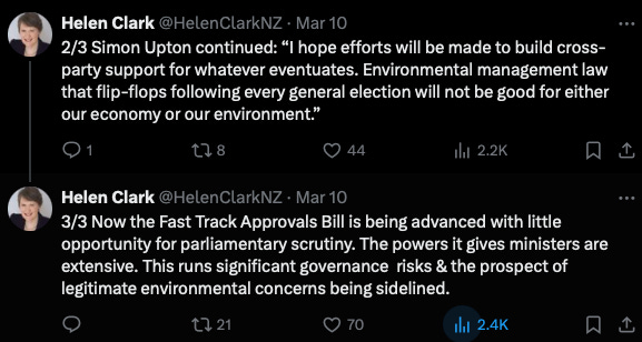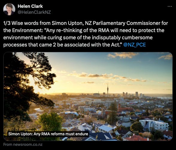 Helen Clark has promoted Simon Upton’s vision of an RMA that did not need new legislation but could have been made to work better. That’s significant because they fought from opposite sides of politics for over a decade. Upton’s Newsroom Opinion article is well worth a careful read.
